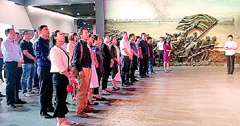 在纪念馆前,全体党员庄严宣誓,重温入党誓词,不忘自己作为一名党员的光荣使命。随后,在讲解员带领下,大家认真参观了展区陈列的珍贵影像资料、图片、实物,仿佛走进了浴血奋战的峥嵘岁月,深刻感受当年部队所处的艰苦环境,体会人民军队艰苦奋斗的精神,